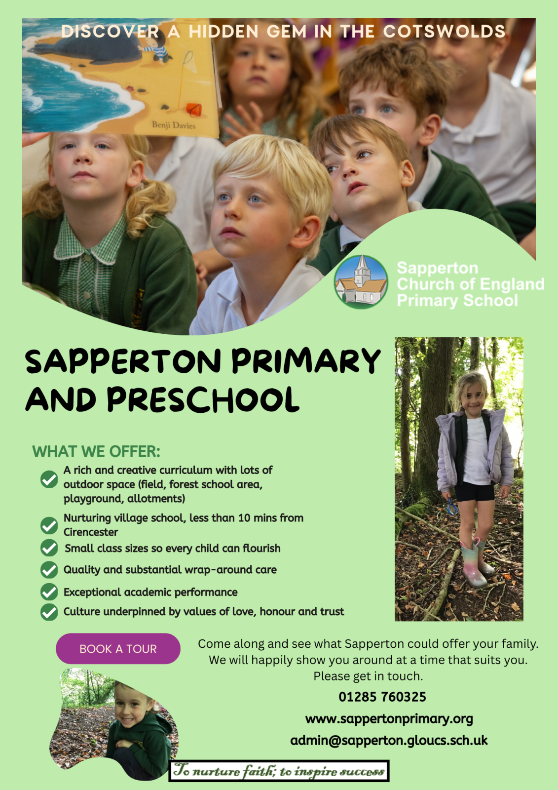 Sapperton Church of England Primary School is a small, community-focused primary school located in the picturesque village of Sapperton, Cirencester. The school prides itself on providing a nurturing environment where children are encouraged to develop their academic and social skills. With a strong emphasis on Christian values, the school fosters a sense of belonging and respect among its students, staff, and the wider community. The curriculum at Sapperton School is designed to be engaging and inclusive, catering to the diverse needs of its students. The school offers a range of extracurricular activities that enhance learning and promote personal development. Facilities include a well-resourced library, outdoor learning spaces, and access to local community resources, which enrich the educational experience. The school's reputation is built on its commitment to high standards of teaching and a supportive atmosphere that encourages every child to reach their full potential.