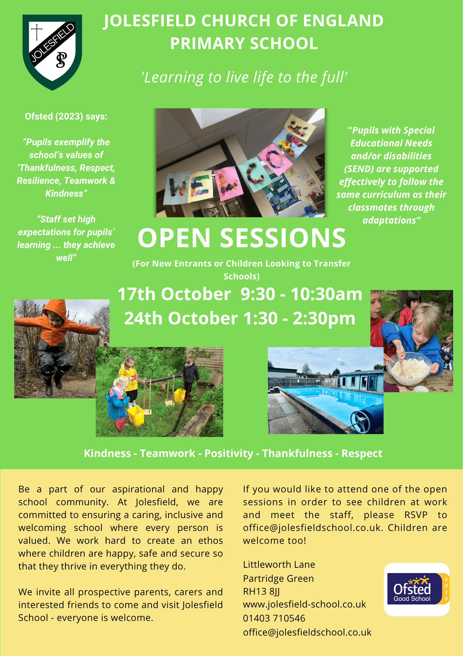 We've been part of the Jolesfield school community for the past 6 years and it's been a truly wonderful experience. The school's focus on caring, inclusiveness and respect has really helped our children thrive. The facilities are excellent, especially the outdoor space which the kids love.