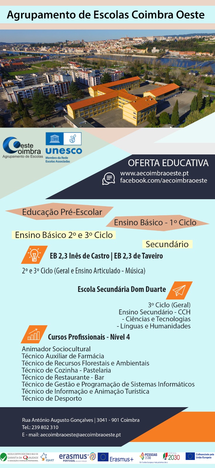 A Escola Coimbra Oeste, localizada em Coimbra, é uma escola de ensino básico que oferece uma educação de qualidade e acolhedora. Nossa escola está comprometida em proporcionar um ambiente de aprendizado seguro e estimulante para os nossos alunos. Visite o nosso website em https://www.aecoimbraoeste.pt/ para saber mais sobre nós.