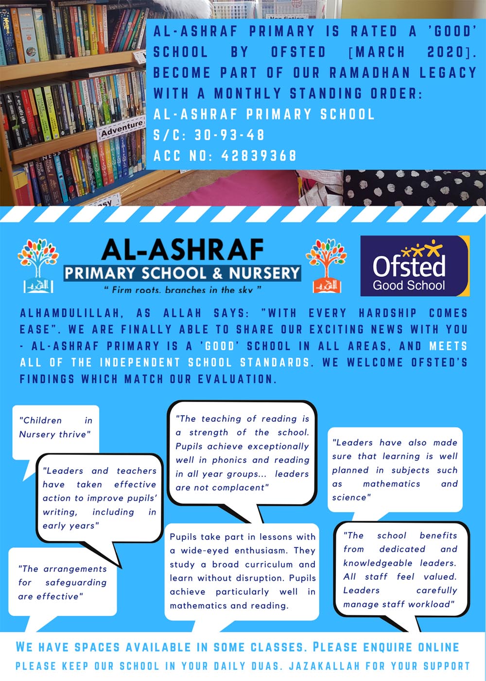 I've been thoroughly impressed with Al-Ashraf Primary School. My daughter is flourishing academically and socially, and we love the emphasis on Islamic values and moral principles. The facilities are great, and the staff are caring and supportive. We've felt very welcome here.
