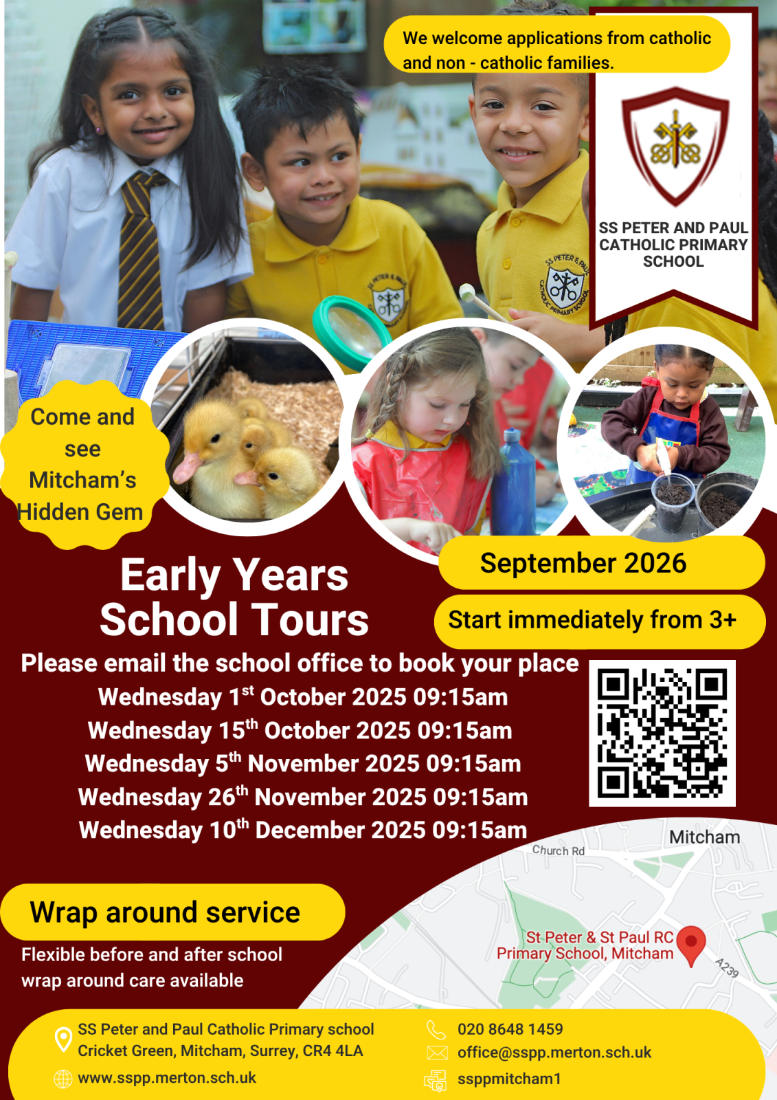 St Peter and Paul Catholic Primary School is a vibrant educational institution located in Mitcham, United Kingdom. The school is dedicated to providing a nurturing environment that fosters both academic excellence and spiritual development. With a strong emphasis on the Catholic faith, the school integrates values and teachings into its curriculum, promoting a sense of community and belonging among students. The school prides itself on its commitment to inclusivity and diversity, welcoming children from various backgrounds and cultures. The curriculum at St Peter and Paul is designed to engage students and encourage a love of learning. It includes a wide range of subjects and extracurricular activities that cater to the interests and talents of all students. The school boasts modern facilities, including well-equipped classrooms, a library, and outdoor spaces for play and learning. The dedicated staff work collaboratively to ensure that each child receives the support they need to thrive academically and personally, making it a well-respected institution in the local community.