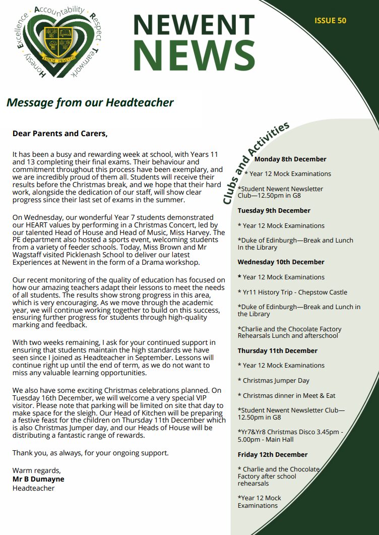 I have nothing but wonderful memories of Newent Community School, where my children thrived both academically and personally. The school's focus on values like Honesty, Excellence, Accountability, Respect, and Teamwork really resonated with us. The facilities are top-notch, and the extracurricular activities are truly impressive. We're so grateful for the well-rounded education our kids received.